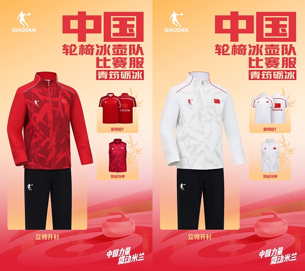 战袍细节处点缀了竹叶图案,呈向上生长之势,将东方元素与现代设计融合,既传递不屈不挠的体育精神,又彰显泱泱大国的文化底蕴;而翻领短T背后的“CHINA”字样以书法字体醒目呈现,民族自豪感尽显其中。当然,这套战袍的剪裁也充分考虑到选手动作舒适性与灵活性,让每一次投壶出手毫无束缚、精准发力。也正是这套凝聚匠心的“青筠砺冰”战袍,陪伴中国轮椅冰壶队站上了领奖台,见证他们捧起双打金牌、拼下团体银牌的荣耀时刻。
